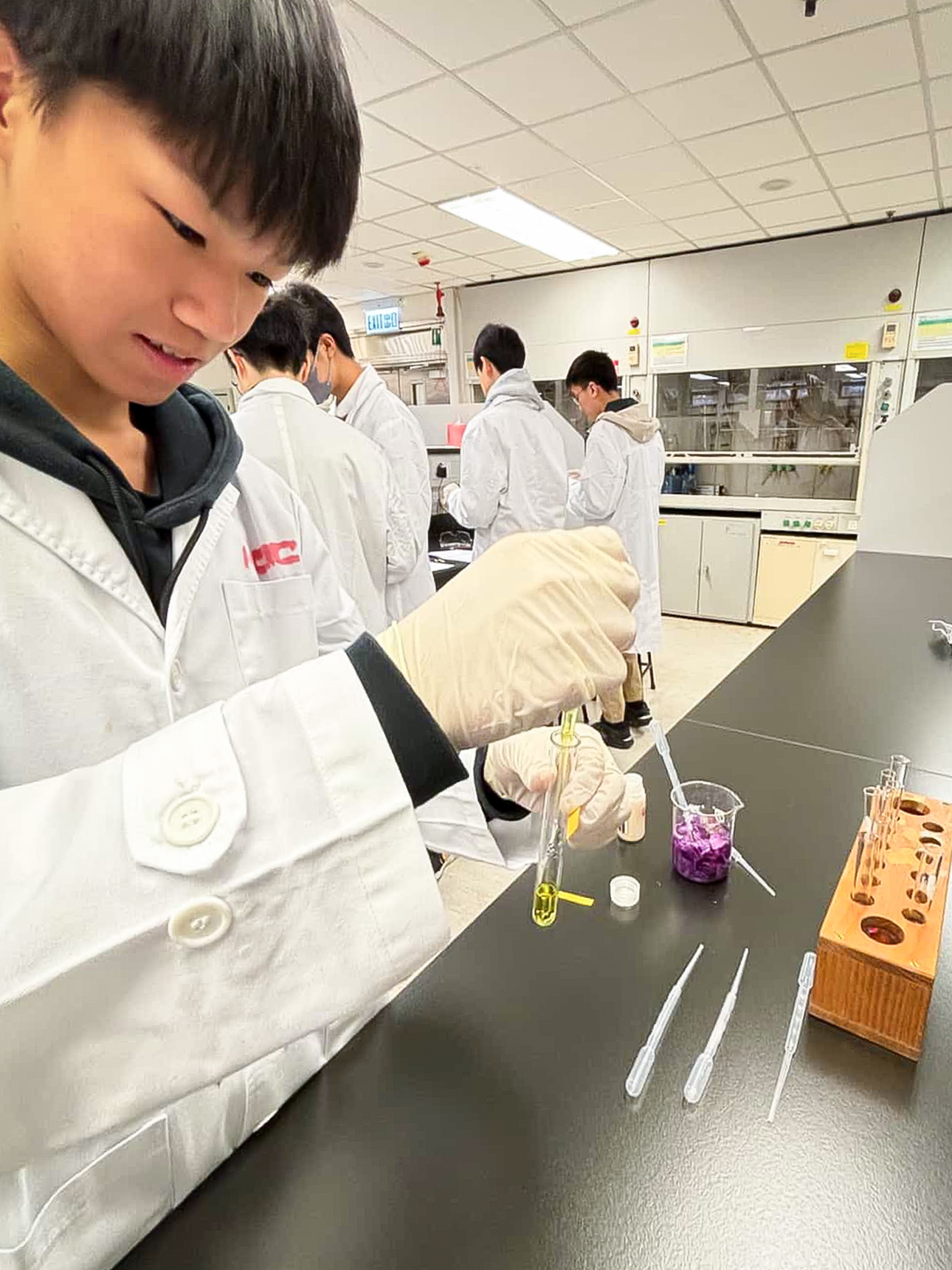 Two students have been selected by the Faculty of Science, the University of Hong Kong (HKU), to join the Junior Science Institute (JSI) workshop on 22 Nov 2025 (Sat). They have actively joined the fun-filled science experiments regarding colour changes in chemical reactions. They also explored the use of Thin-layer chromatography (TLC) and the principle of rotary evaporator.