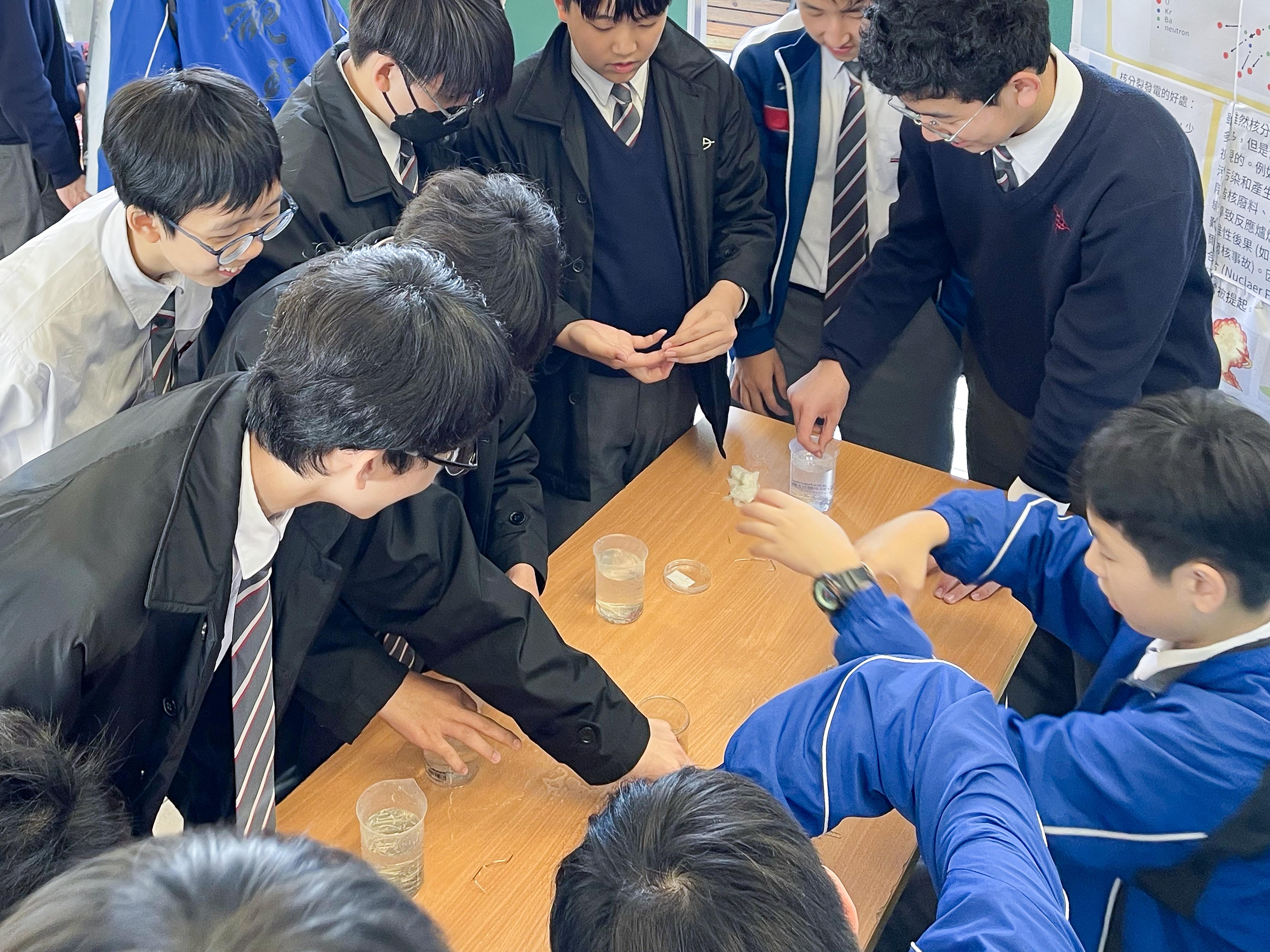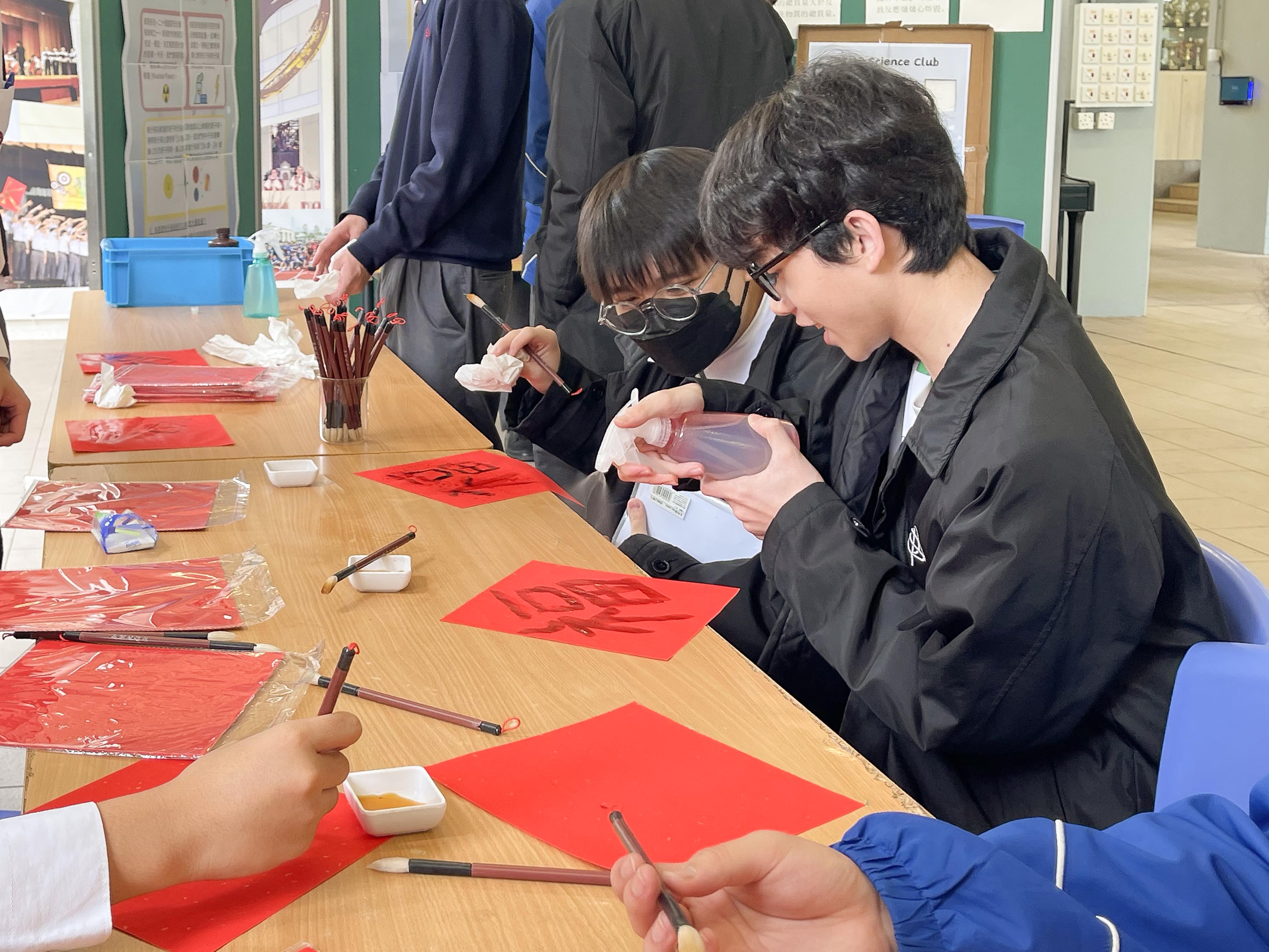 Day 2: With Chinese New Year approaching, participants explored innovative methods to write couplets using techniques learned in Junior Science. Using starch solution and dilute iodine solution, students wrote positive phrases on red paper, with the underlying scientific principles displayed on the board.