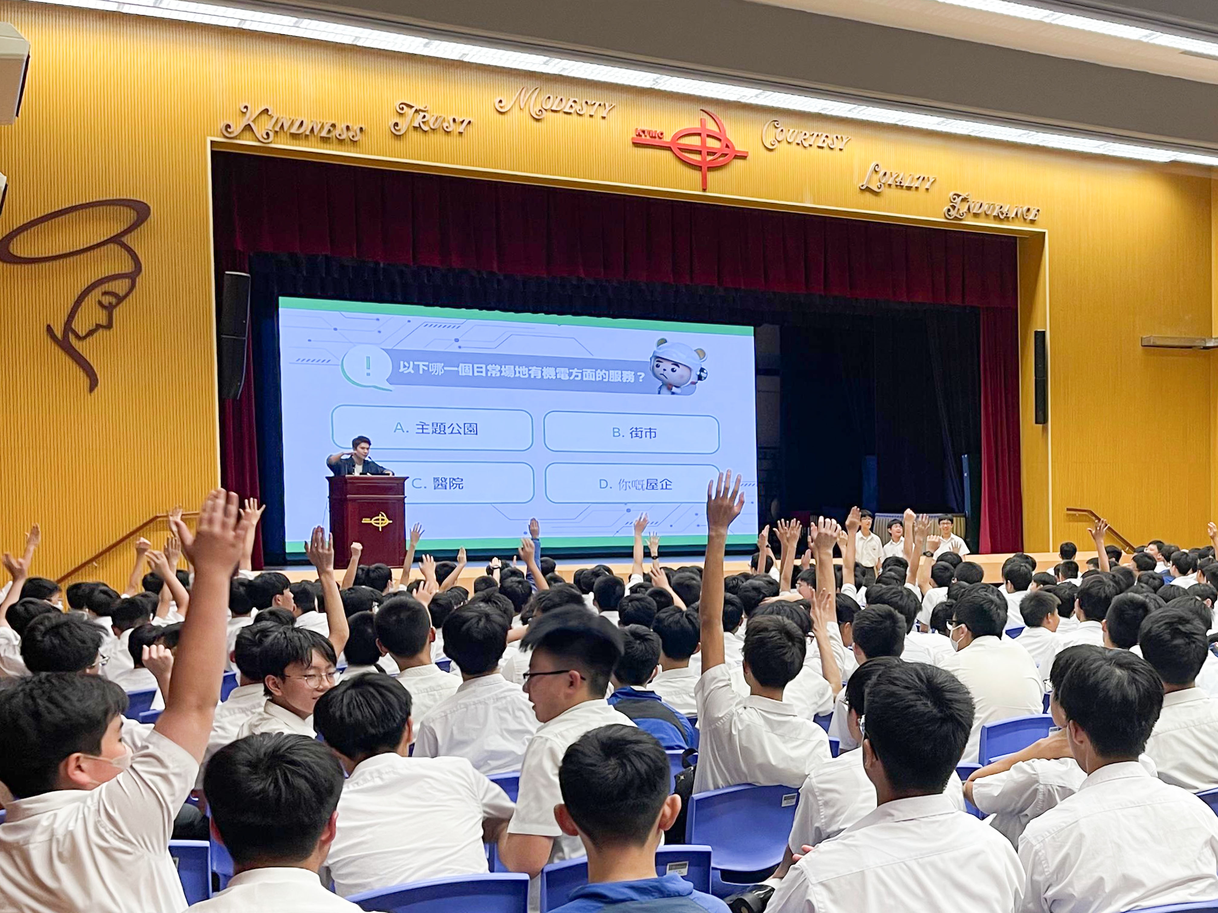 As part of our STEAM Education program, we are thrilled to welcome representatives from the Electrical & Mechanical Services Department (EMSD) to deliver a presentation on the district cooling system, smart city initiatives, and hydrogen as an energy source. Students in Forms 1-3 actively engaged with the speaker, eagerly participating by answering questions during the talk.