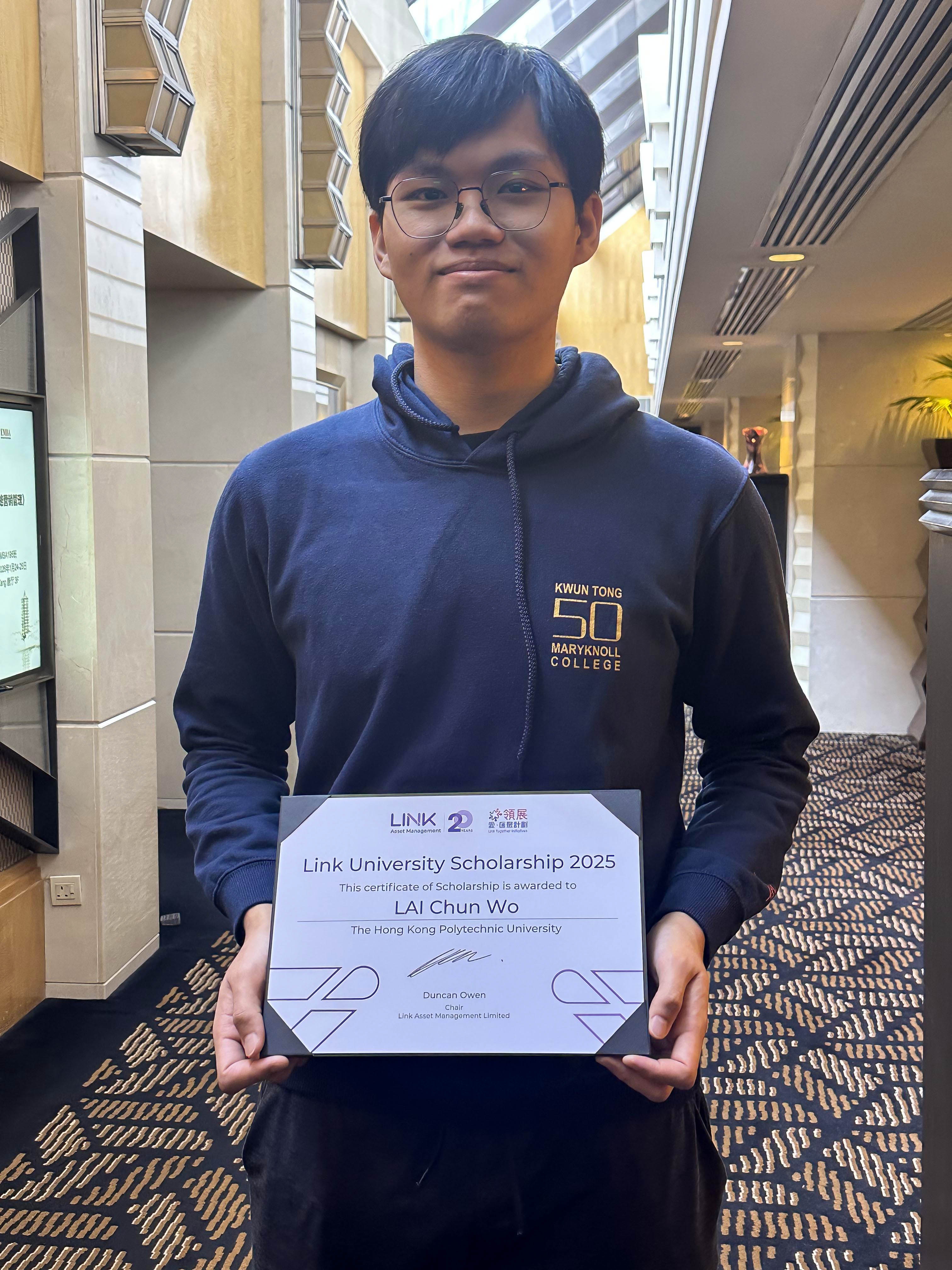 Congratulations to Lai Chun Wo on the Link University Scholarship 2025